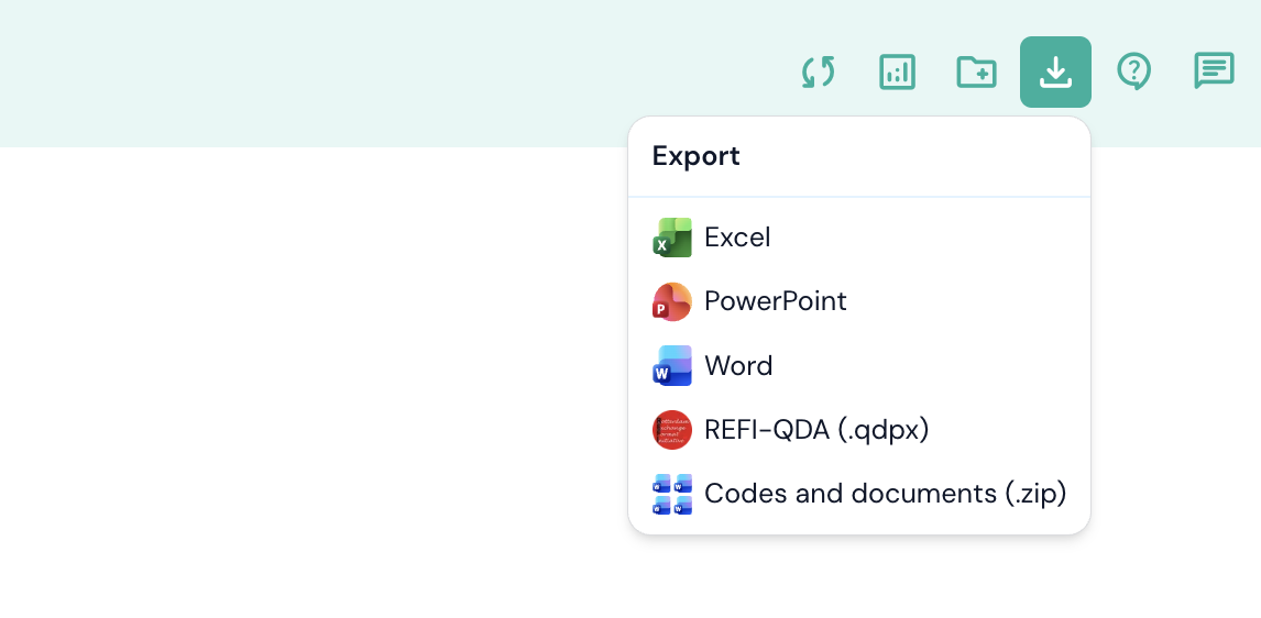 You can export your analysis to Word, Excel, or PowerPoint in one click using the Quick export button in the toolbar.