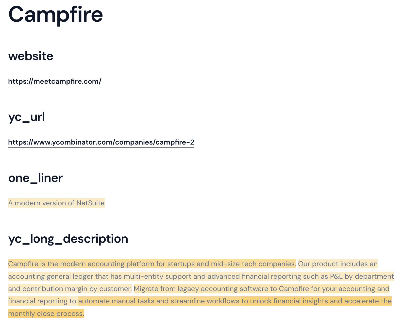This is an example what the document looks like with names of "Content" columns as headings and the contents of the corresponding row as the text under the header. Thus, each document row will be its own document in Skimle. Note that headers are only created for those column that have a non-empty value in the corresponding spreadsheet or CSV row.